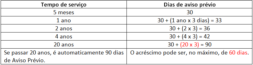 Porém, sempre, o mínimo de aviso prévio será 30 dias e o máximo será 90 dias.