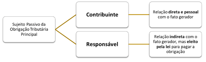Em regra, o sujeito passivo será aquele que pratica o fato gerador, ou seja, um contribuinte. Ocorre que, em certas ocasiões, por razões de praticabilidade tributária, ou mesmo por sucessão de devedores, a lei tributária pode eleger um terceiro, com relação apenas indireta com o fato gerador, para saldar a obrigação, um responsável tributário.
