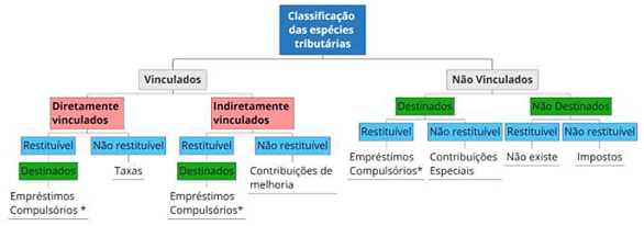 Conforme a teoria pentapartida (que será melhor abordada adiante), são cinco tipos de tributos: