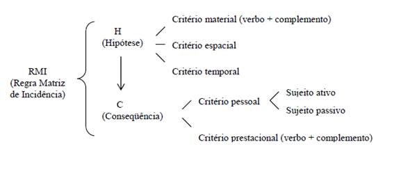 | Regra-Matriz de Incidência Tributária (RMIT) | Modelo padrão que inclui a hipótese de incidência e o consequente tributário | – Hipótese: critérios material, espacial e temporal – Consequente: critérios pessoal e quantitativo (ou prestacional) |